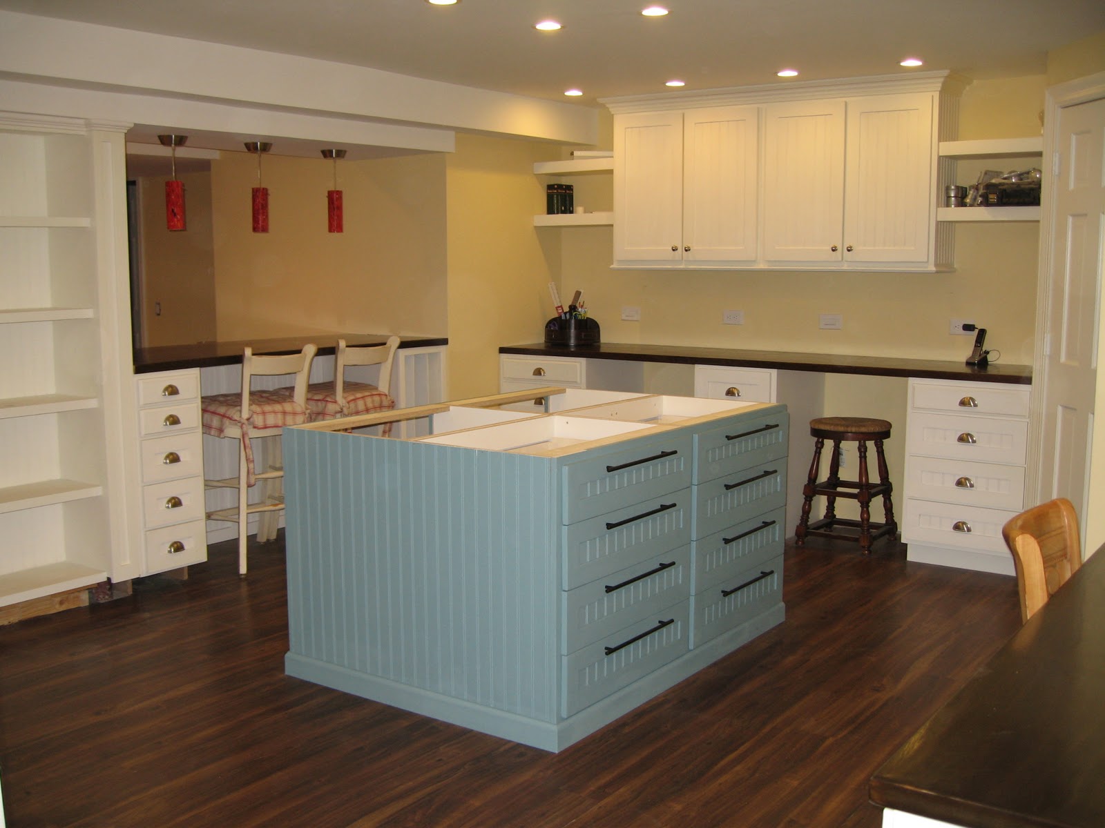 Peek inside a celebrity floral designer's space 13 photos. This vintage armoire holds fabrics, ornaments, and sewing and craft supplies. Attach the fabric to the top of the shelf, and then make two holes in the. Kids' basement art studio 10 photos. We made the call a few years back to move our boys into the same bedroom and to create a craft room workspace for me on the main floor. This craft room has a very interesting work table. Organization, because you want to know where everything is, and have the items you use regularly readily available, she says. Decorate the shelves in your craft room. It's not the biggest space, but certainly not small either. Serious crafters need a serious craft room. The most important parts of any sewing space whether you have a dedicated sewing room or just a corner of a bedroom or even the dining room table (i've used all three over the years) are the work surfaces. We have several great galleries to add your collection, whether these images are best galleries. Ana white will show you how to make your own modern craft table!lots of storage, tons of workspace on top, and there is a spot for two counter stools at the opposite ends of the table so kids can have their own spot to craft/color.